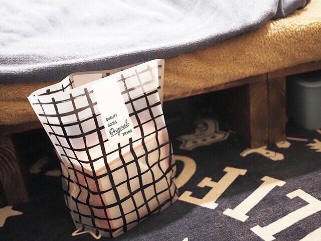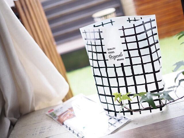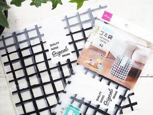 こちらもモノトーン&シンプルな格子柄で、ゴミ袋にしておくにはもったいないぐらいのおしゃれなビジュアルですよね。