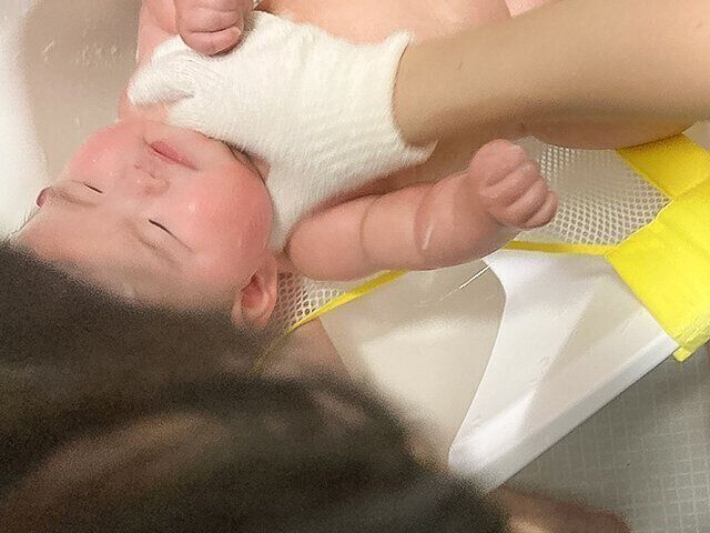 赤ちゃんの体をガーゼで拭いていると、いつの間にか「あれ、ガーゼどこ行った?」ってときがありませんか?(わが家だけ?)手袋になっているとお風呂場で絶対に見失いません。また、ガーゼ越しだと赤ちゃんの肌を擦るときの強さがわかりづらいですが、指先で直接擦るので無駄な力を使わず細かいところを直接洗えます。特に、アカがたまりやすい首回りや、おしりふきで取りきれなかったお尻の汚れが取りやすい!