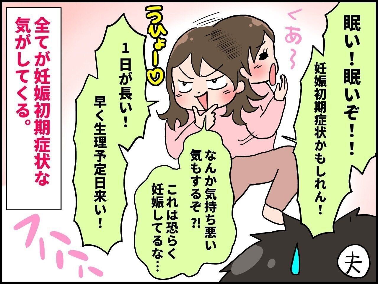 願望がそうさせるのか、高温期は妊娠していなくてもなぜか頻尿になって夜中にトイレに行きまくったり、吐き気がしたり、眠たくなったりと妊娠初期症状を思わせる体の状態になるのですが、生理が来ると全て症状が消えるのが不思議でした。