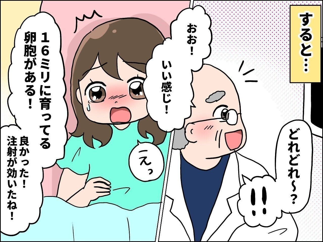 順調に育ってくれた卵胞を見た、この時の嬉しさは、今でもはっきりと覚えています。