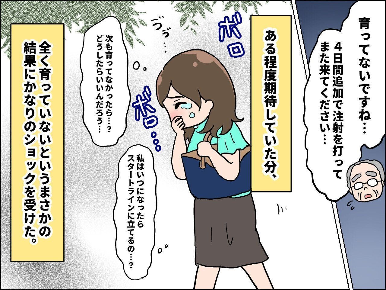 長い間、飲み薬を使って排卵誘発を試みる治療をしていたものの、なかなか卵胞が育たず…。