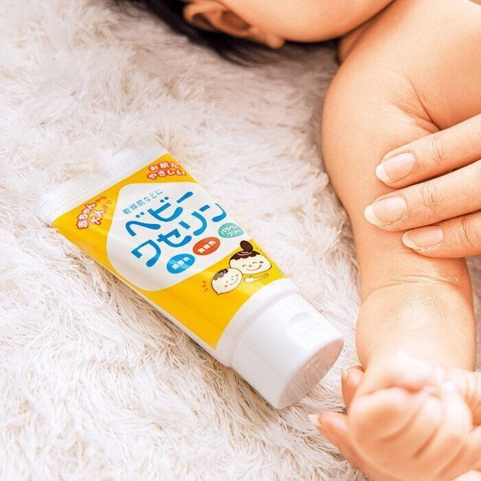 やわらかいワセリンが肌表面をコーティングし、バリアーになって皮膚を保護。擦れて乾燥しやすい口まわり、耳、関節に塗るほか、おむつかぶれの予防に使用するママも。