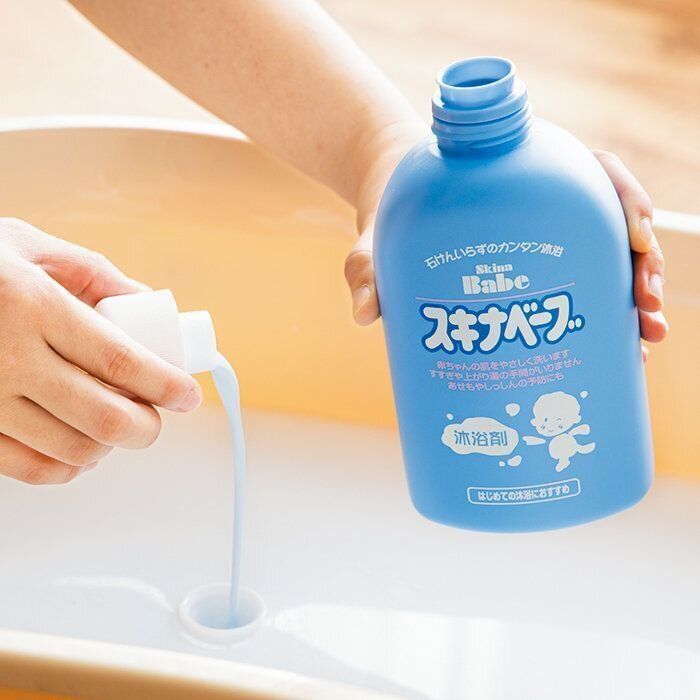 湯船の中でなでるように洗うだけ。石けんを使わなくても、赤ちゃんの肌の汚れをしっかり落とし、皮脂を取りすぎることもありません。かけ湯をせずに、有効成分が肌に残ることで、しっとりと潤い、あせもや湿疹などを予防します。