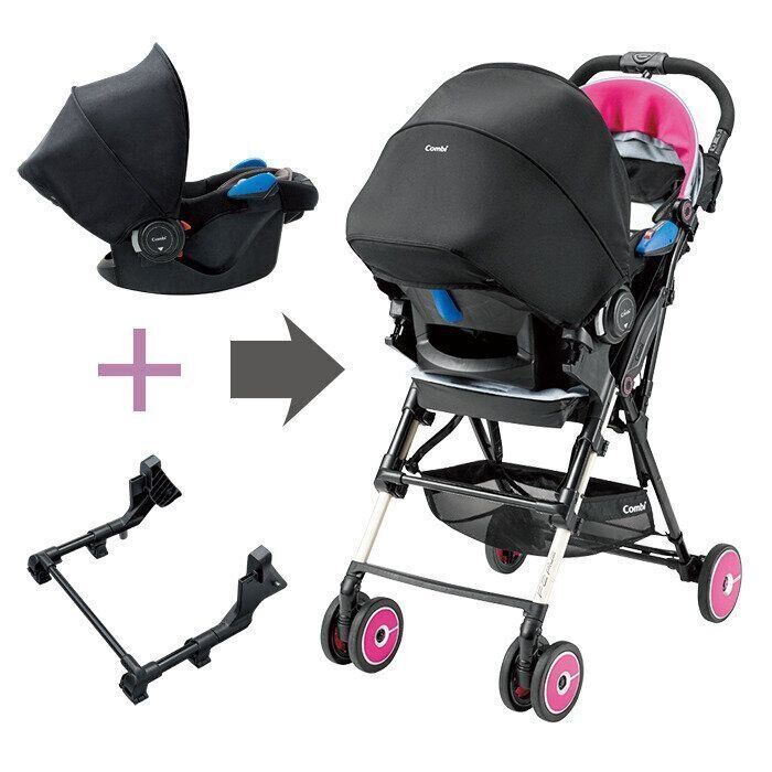 車・ベビーカー・お部屋への移動が簡単なトラベルシステムに対応。4段階リクライニング可能なベビーカーに、R129適合のベビーシート アイ-スナグを装着。