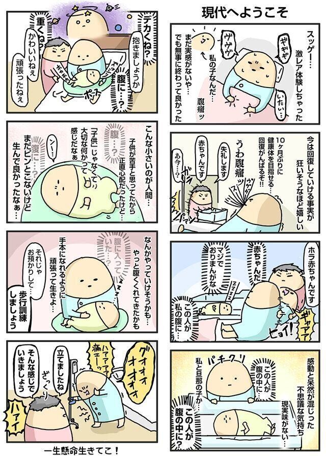 ダル子「40週の時点で3,900g予想の巨大児で、入院をして※ラミナリア桿(かん)→促進剤をしたものの子宮口が開かず、帝王切開になりました。産後は傷が痛くて大変でしたが『これから回復していける』という前向きな気持ちが大きかったです。体もすごく軽くて原因不明の不調もない。不調に対処できることが嬉しくて、おなかの傷はあまり気にならなかったです。