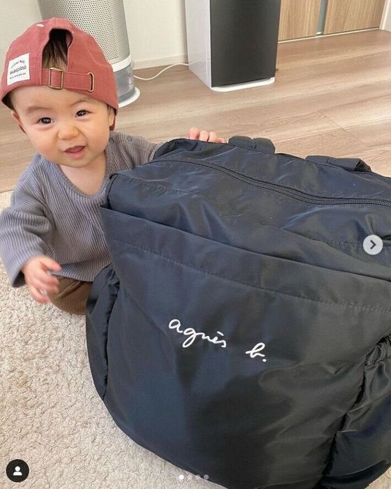 はるとさんは、アニエスベーのマザーズバッグを購入。こちらはリュックにもなる2wayタイプなんだそう。なんとおむつ換えマットも付いており、ママにやさしいセットアイテムですよね。はじめは大きいと感じたけど、実際はこれくらい必要だと思うほど荷物の多さを実感しているんだとか!とっても重宝しているようですよ。