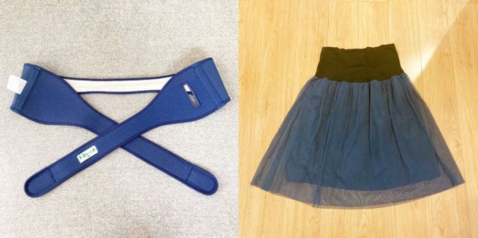 仕事用ワンピは、産休に入った瞬間に出品。マタニティスカートは、産後1ヶ月くらいでウエストが減ってきてたので出品。骨盤ベルトは産後2ヶ月くらいで着用しなくなったので、出品しました。
