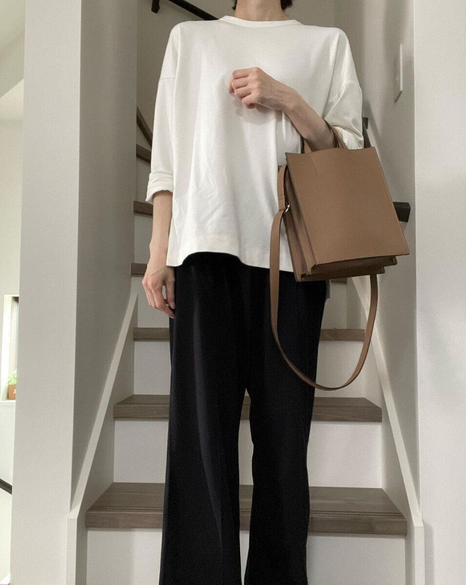 「UVカットスリットT」と「エアリズムコットンタックパンツ」の楽ちんコーデ♪