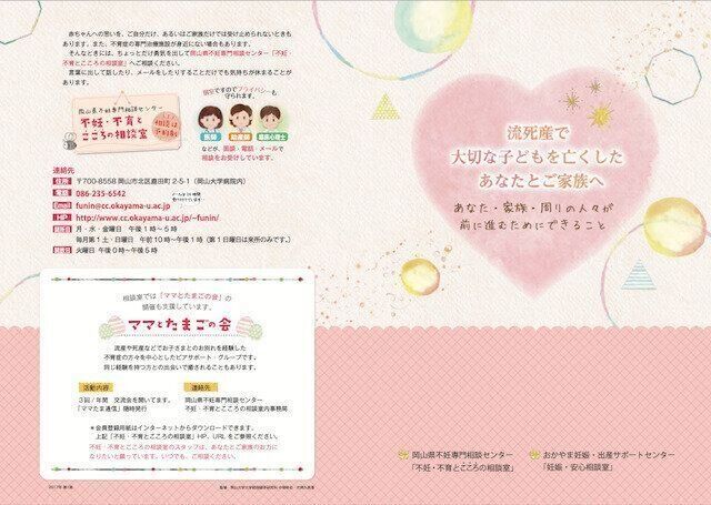 私たちは「流死産で大切な子どもを亡くしたあなたとご家族へ」(上画像)というリーフレットを作成していて、ここからダウンロードしてもらえますし、希望があれば郵送もしています。