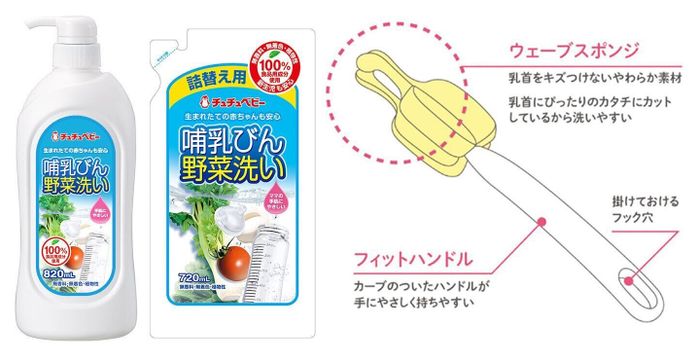 洗う際は、哺乳びん野菜洗い洗剤の使用がおすすめ。また、専用の乳首ブラシを使うと、乳首をキズつけずにすみずみまで洗えて安心です。