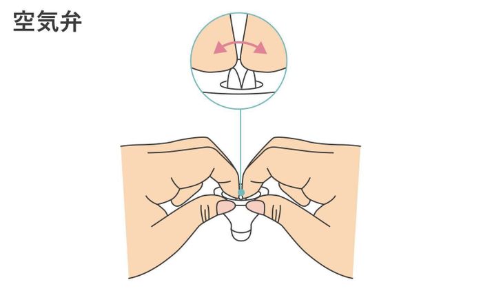 広口タイプ乳首の場合は、ミルクが出ないときと同様に空気弁の内側両サイドから指(爪)で広げてください。