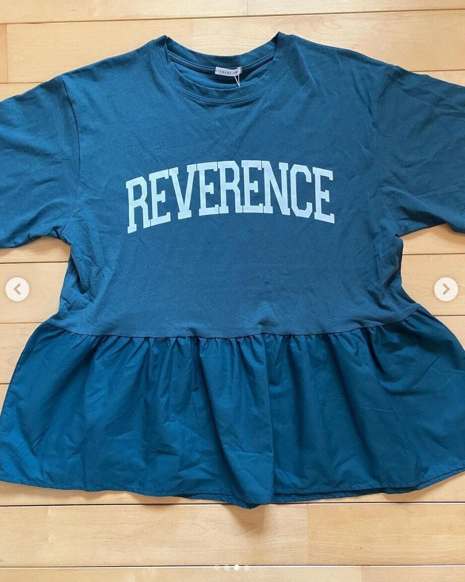 しまむらの開店時に買い物をしたという想☆そう☆さんはこちらのトップスをセレクト!胸元の英字ロゴや裾のフリルがとてもおしゃれですよね。普段着やマタニティコーデでおなか周りをカバーすることもできるのが魅力的です♪