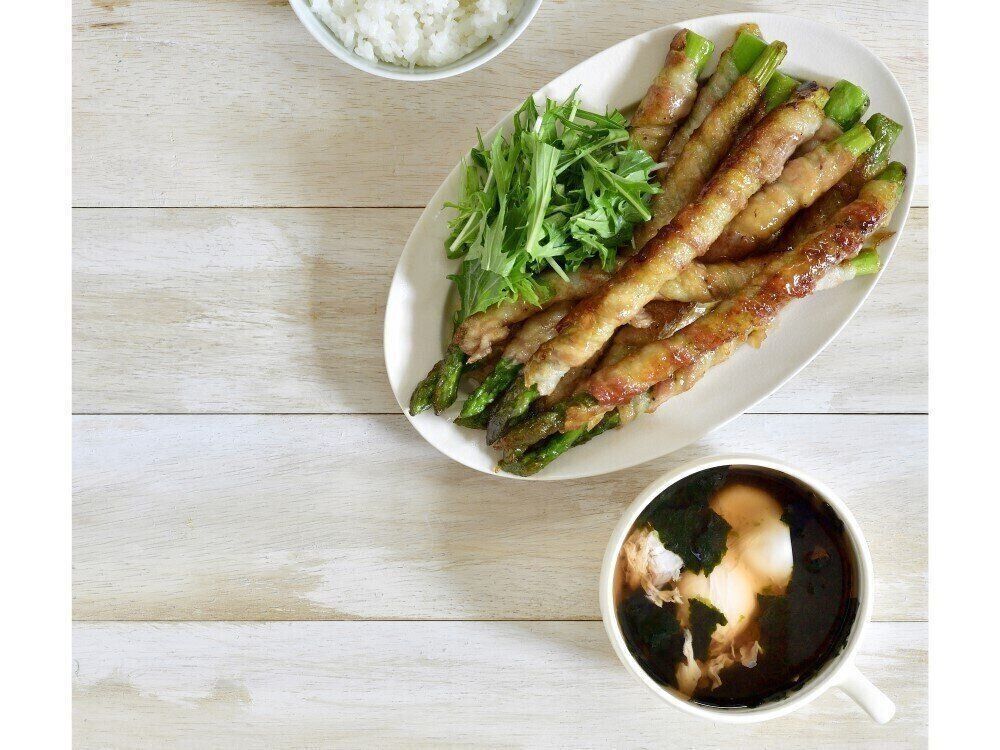 ■アスパラガスの肉巻き水菜添え(1人あたり葉酸230㎍)