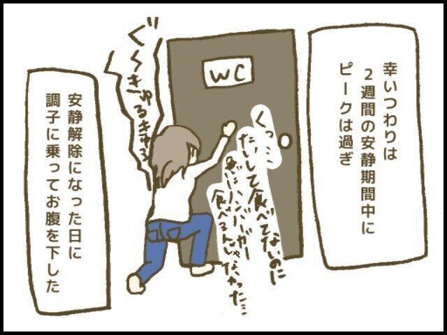 おまけですが、安静期間が終わる頃につわりが治まってきた私は、病院受診をして安静解除になったその足でジャンクフードを買って食べ、盛大にお腹を壊しました。
