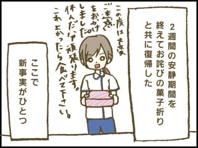 第5話は切迫流産による自宅安静期間が終わり、職場に復帰したあと、お腹の張りと張り止めの薬の副作用に悩まされたお話です。
