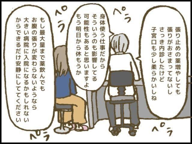 第6話は張り止めの薬を飲みながら仕事を続けた結果、切迫早産になってしまったお話です。