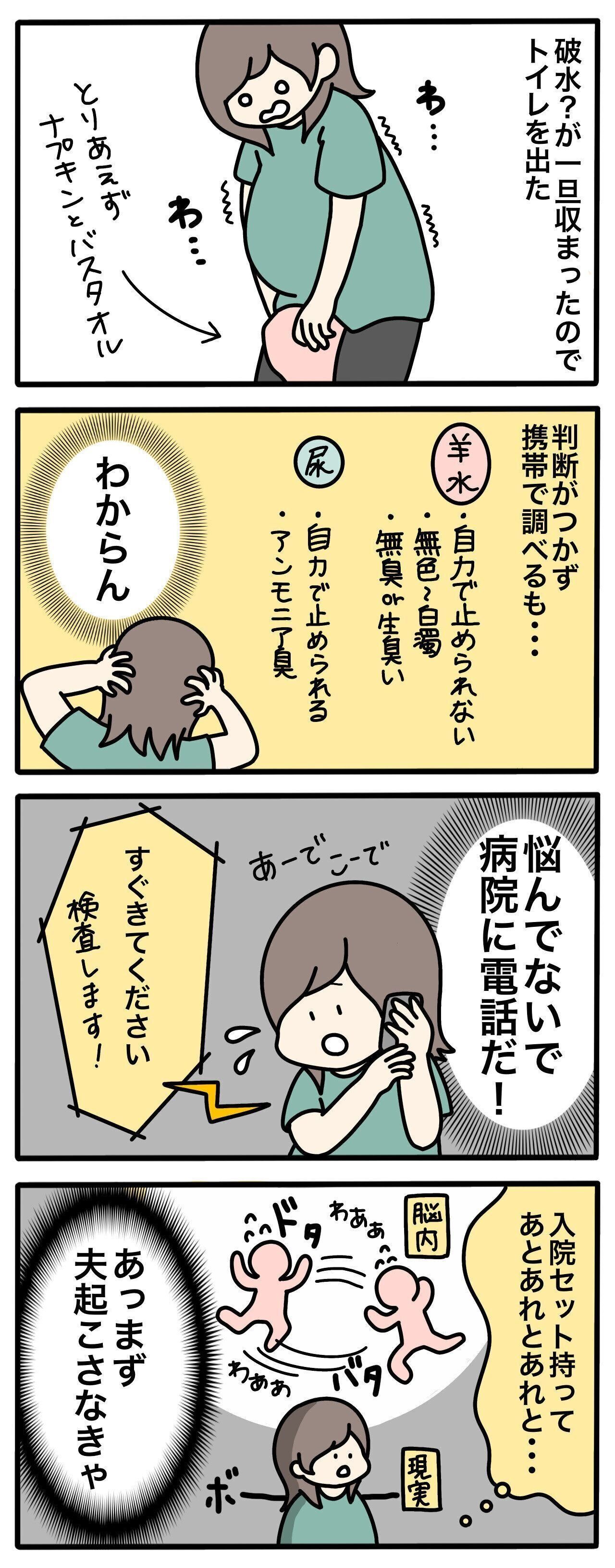 破水から始まる出産があることも知っていたし、いろんな場合を考えてシミュレーションしていたのに、いざとなると焦ってなんにもできませんでした。