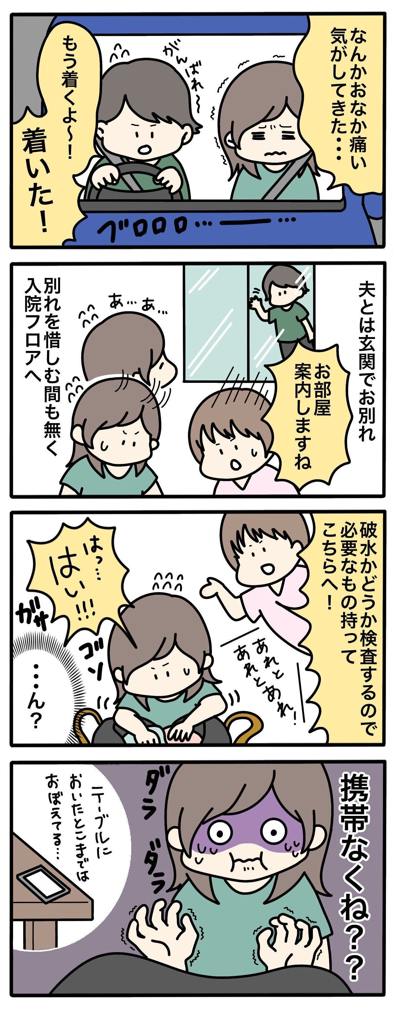 破水検査のために、バスタオルなど必要なものを持って陣痛室に移動するのですが、そこで携帯を忘れたという衝撃の事実に気がつきました。