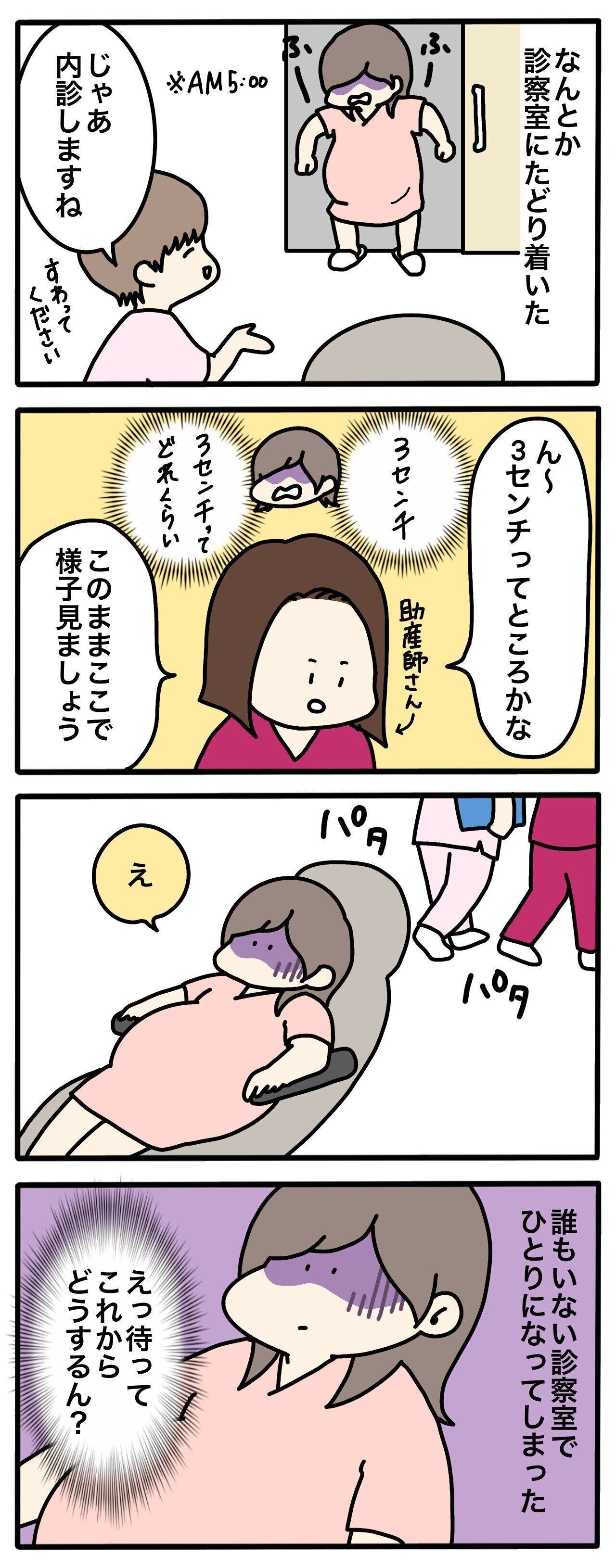 先の見通しも立たず、今すべきこともわからず、そしてスマホを忘れてしまったために誰からの励ましもなく、ひとり陣痛に耐えました。とにかく不安な時間でした。