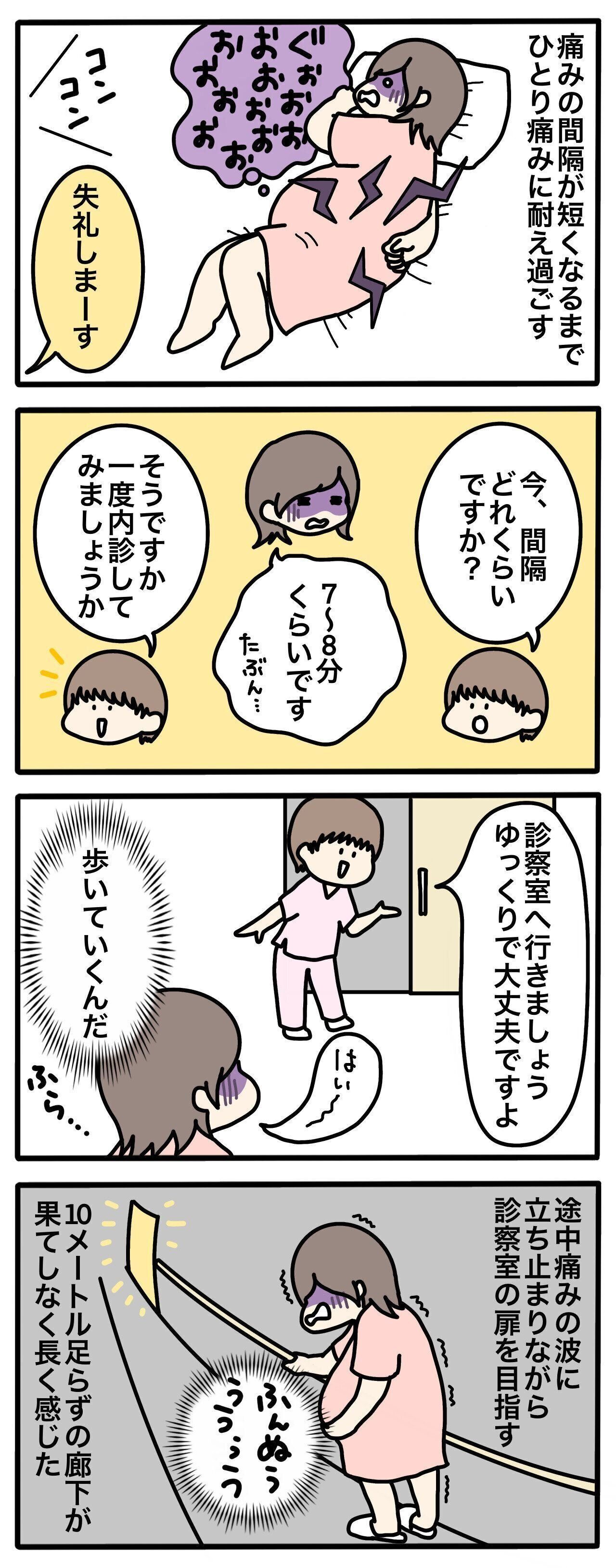 おなかの痛みに耐えながら、陣痛の合間を縫って診察室を目指しました。