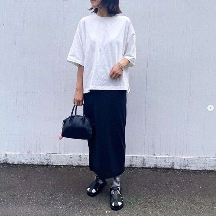 ストレッチが効いていて履きやすいマキシスカートとオーバーサイズT