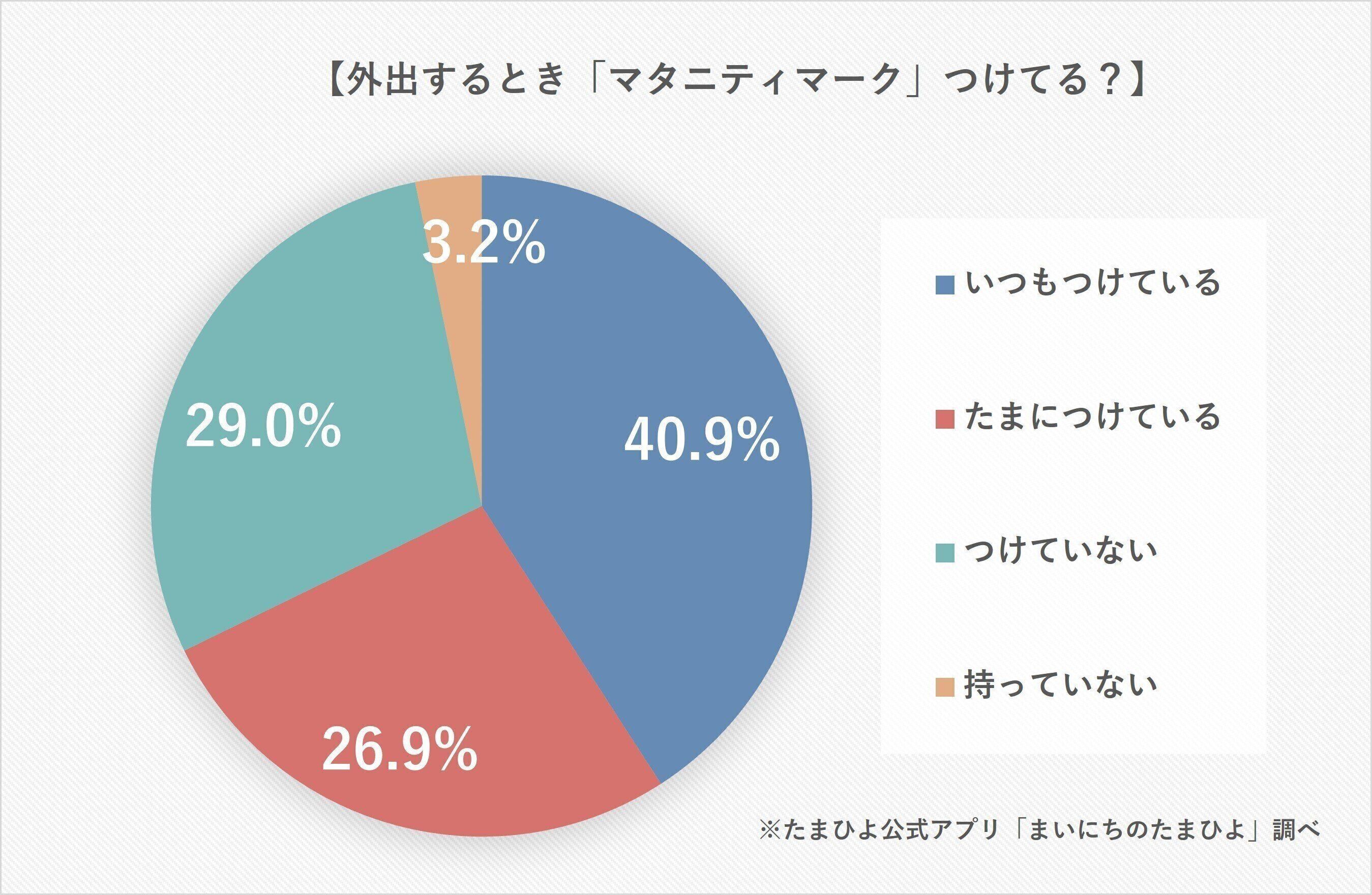 妊娠3カ月前後のママに「外出するとき『マタニティマーク』つけてる?」という質問を、スマホアプリ「まいにちのたまひよ」の情報交換コーナー(※ルーム)で聞いてみました。結果は「つけている」、「たまにつけている」と合わせて約67%、逆に「つけていない」「もっていない」と回答したママも約32%となりました。