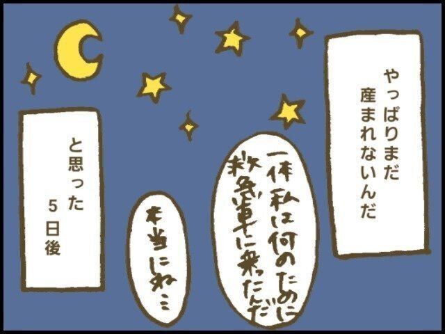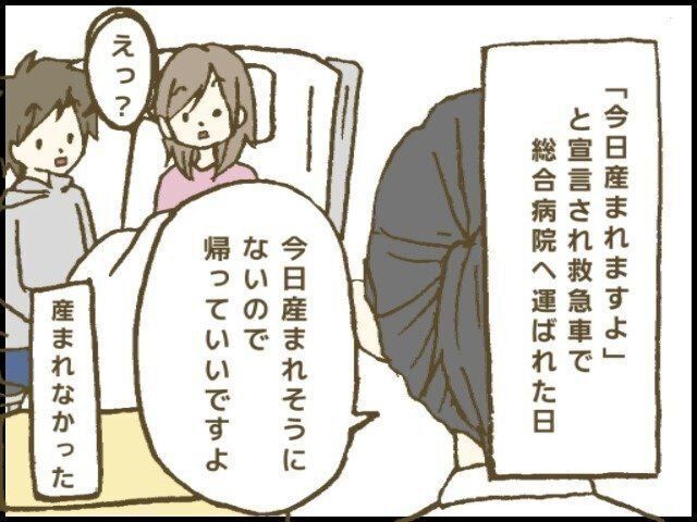 「今日産まれますよ」と宣言されて救急車で運ばれた日、産まれず。