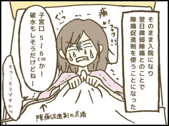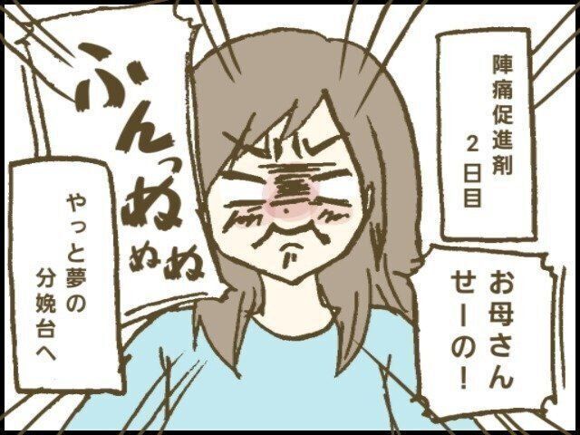 陣痛促進剤も2日使ってやっと分娩台へ行けたと思ったら、分娩の時もなかなか出てこなくて、実は吸引までされてました。