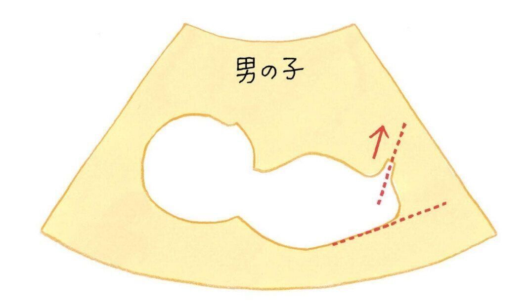ベビーナブとは、英語で「赤ちゃんの突起」という意味。超音波画像で見える突起の角度によって、性別を見分けます。