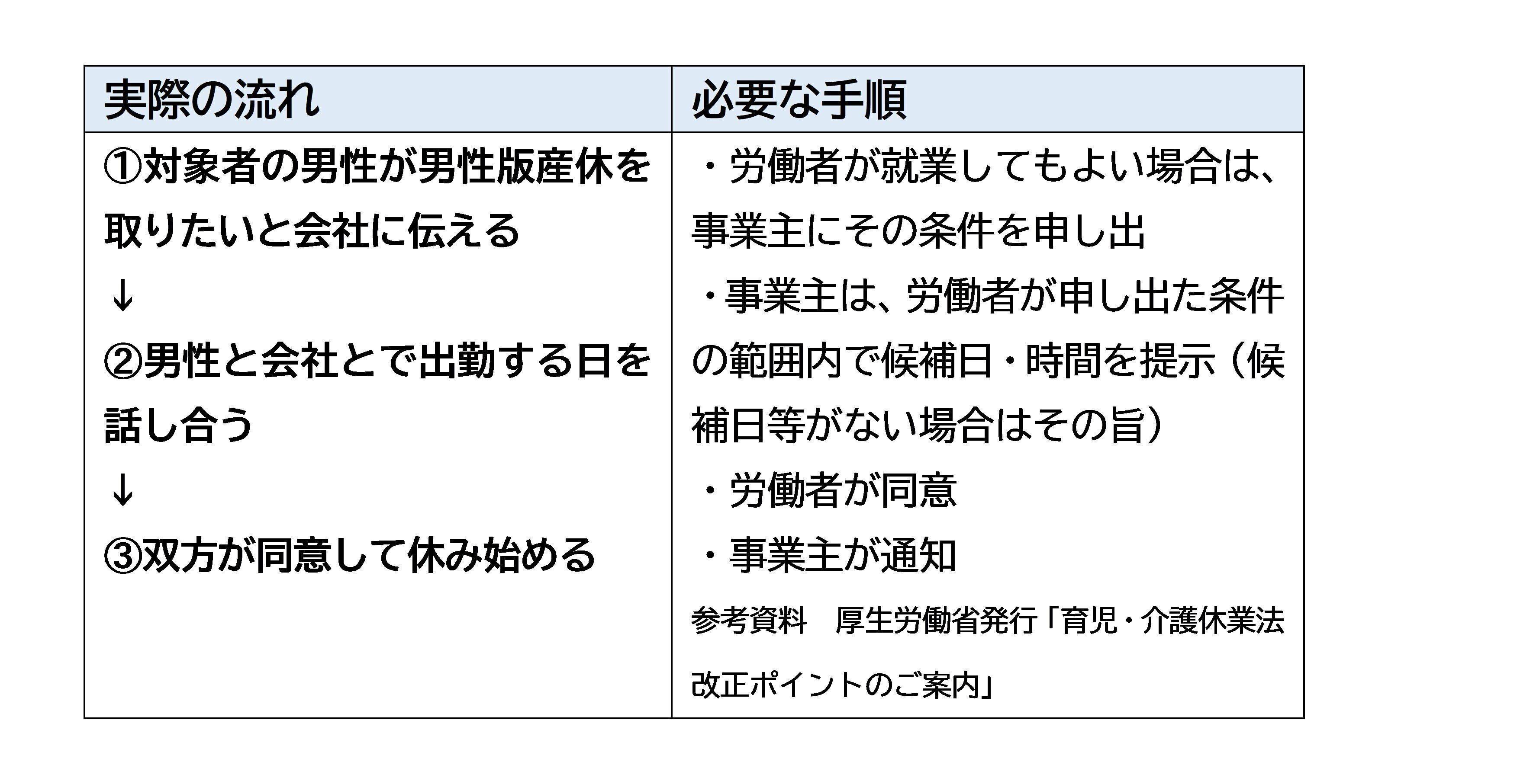 対して「毎週水曜日の定例会議に出席する」は、突発的ではないので従来の育休制度では認められていません。でも、男性版産休では、この働き方も認められるようになりました。