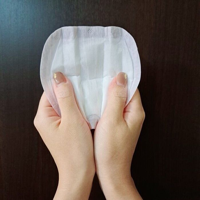 商品を広げるのもとても簡単で、ささっと装着することができました。下着への粘着力は高いですが、下着の生地を傷めてしまうようなこともなかったです。