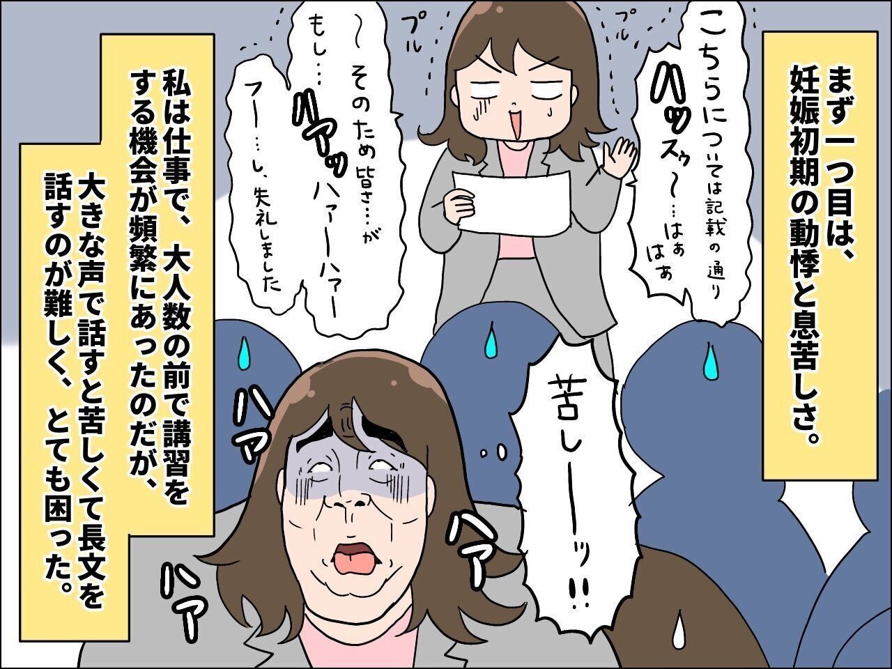 妊娠すると動悸や息切れがあるということについてはなんとなく聞いたことがありましたが、おなかが大きくなってからのみ起こる症状だと勝手に思い込んでいたので、まさかおなかも全く出ていないかなり初期の段階で、息苦しくて長い言葉を喋ることができなくなるとは思ってもみませんでした。