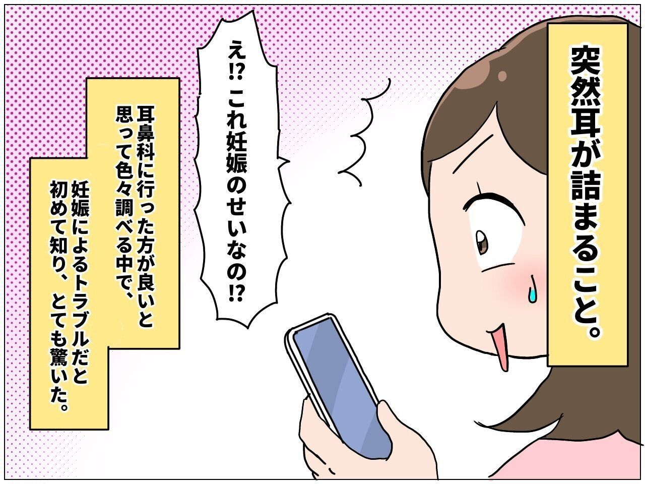 耳が詰まることは妊娠中よくあることだということを、実際に症状が出て調べるまで全く知らなかったので「何の病気だろう…。手術しないといけなかったらどうしよう…」などととても不安に思っていました。
