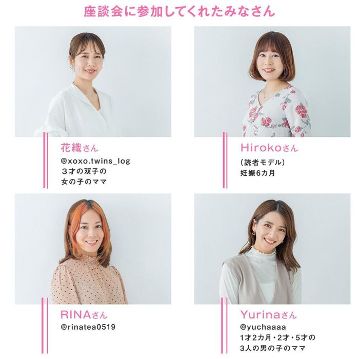 先輩ママたちに“赤ちゃんと過ごすお部屋のこと”などを教えてもらいました。そろそろ出産準備が気になる妊娠6カ月の妊婦さんと、人気インスタグラマーでもある先輩ママたちで座談会を開催しました。