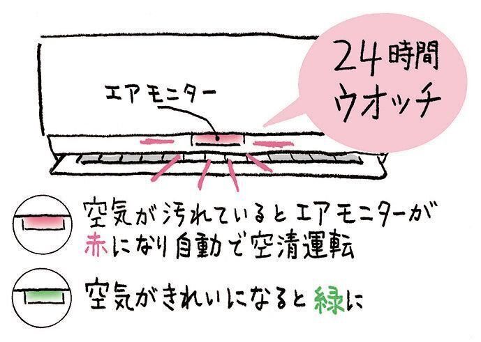 【花織さん】私はエアコン内に汚れがたまると部屋の空気まで汚くなると聞いて、エアコンを購入するときは、汚れを自動でお手入れしてくれる機能があるものを選んだ!