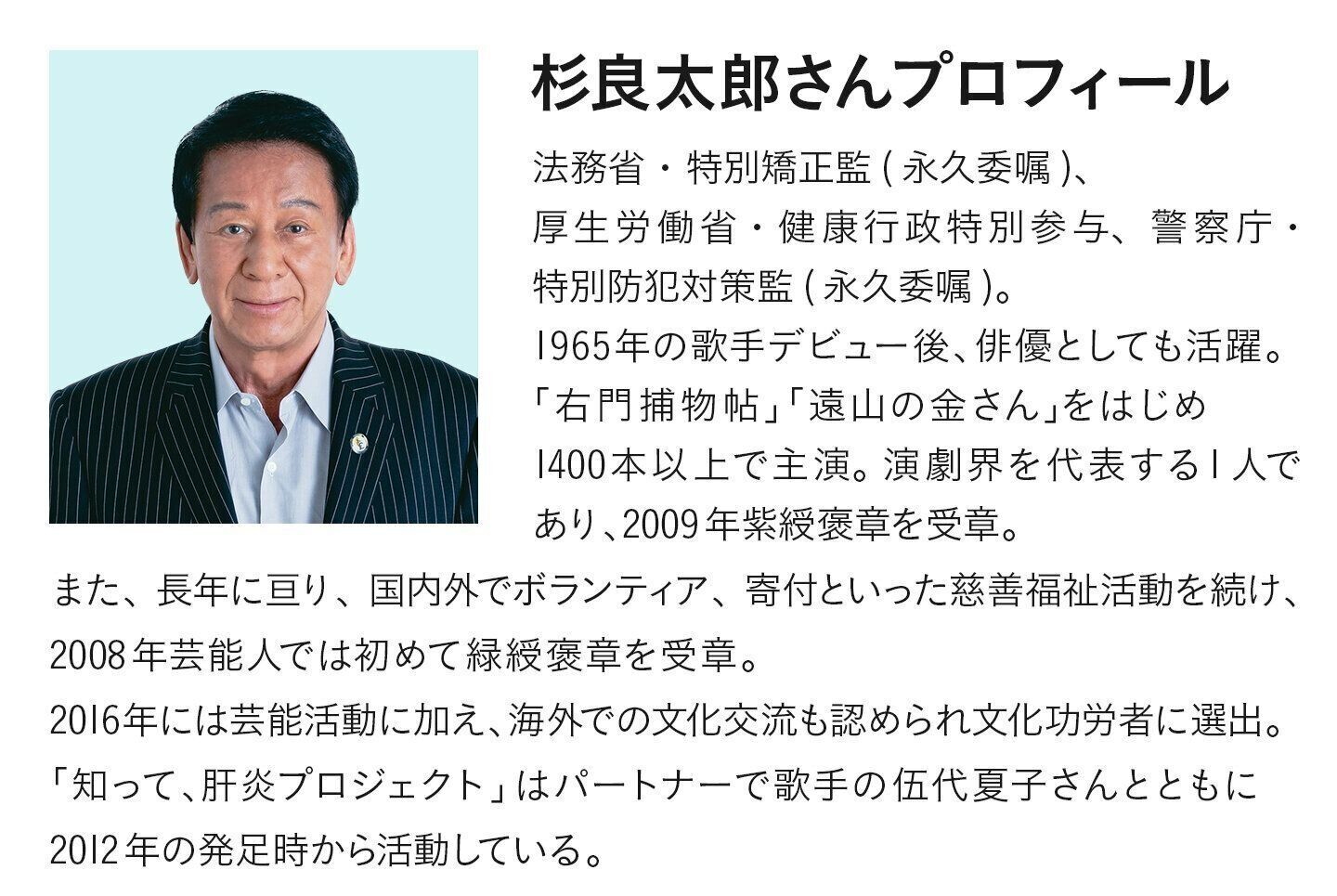 杉さんのパートナーであり「知って、肝炎プロジェクト」の特別大使としてともに活動している、歌手の伍代夏子さんは、C型肝炎の闘病経験があり、杉さんはそれを支え続けてきたのです。