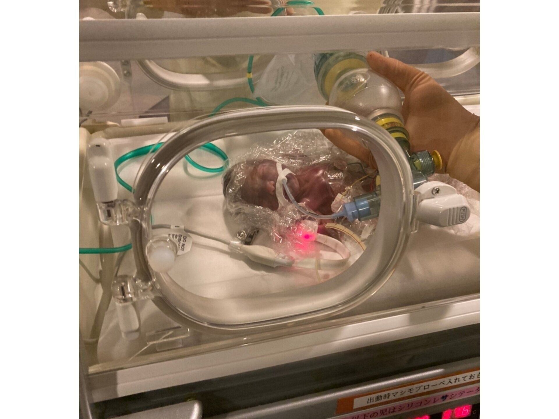 看護師さんに「ここから手を入れて触っていいですよ」と言われ、保育器の穴から手を入れて、娘にかけられたカバー越しに恐る恐る触れました。娘の手は触ったら指が折れてしまうんじゃないかというくらいの小ささ。誕生してくれた命に感動した反面、「どうかこの子を助けてください」と祈るような気持ちでした。
