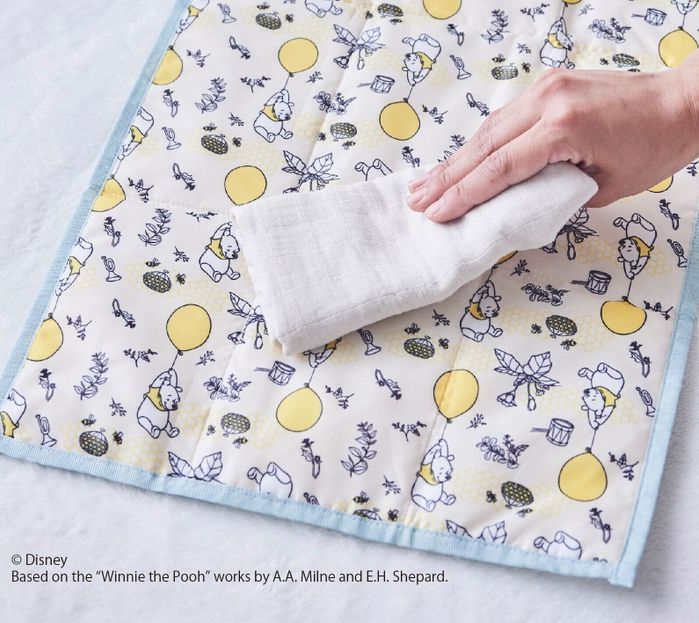 赤ちゃんを乗せる面には、撥水加工がしてあるので、マットにおしっこや汚れが浸透するのを防ぎます。汚れたときには、布で軽く叩くようにして拭くだけでOK。