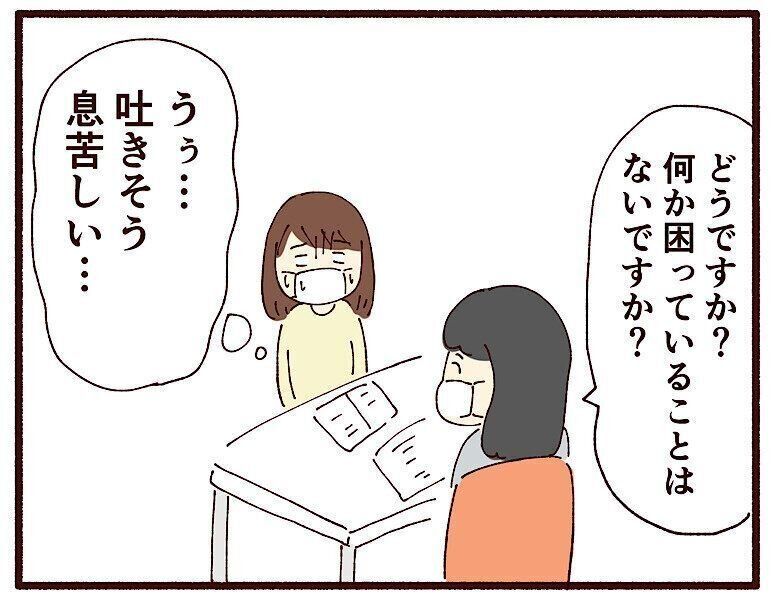 相談したいことや聞きたいことは山ほどあったけど、「ここで吐いてしまったらどうしよう」で頭がいっぱいになり、それどころじゃなくなっていました。。(せっかく対応してくださったのに申し訳ない…)