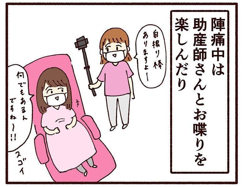 無痛分娩の麻酔が効いていたので、陣痛中は助産師さんと雑談をしたり、家族と電話をしたりして穏やかに過ごすことができました。しかし、数時間後…
