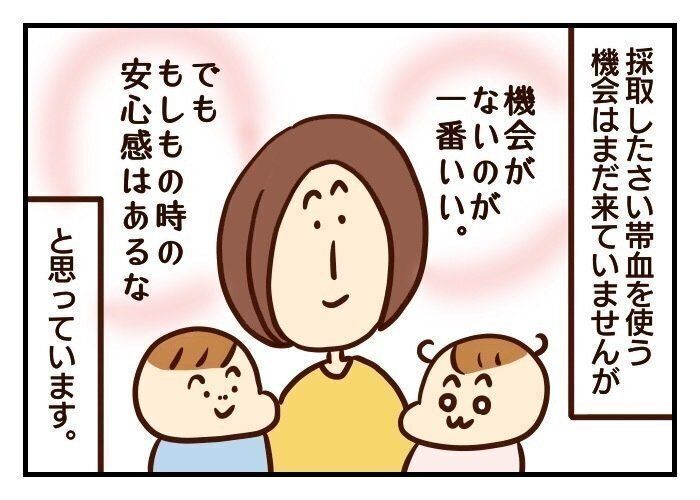 もしもの時のお守りとしてさい帯血を保存しながらも、このまま使われることなく我が子が健康に育つことを願っています!