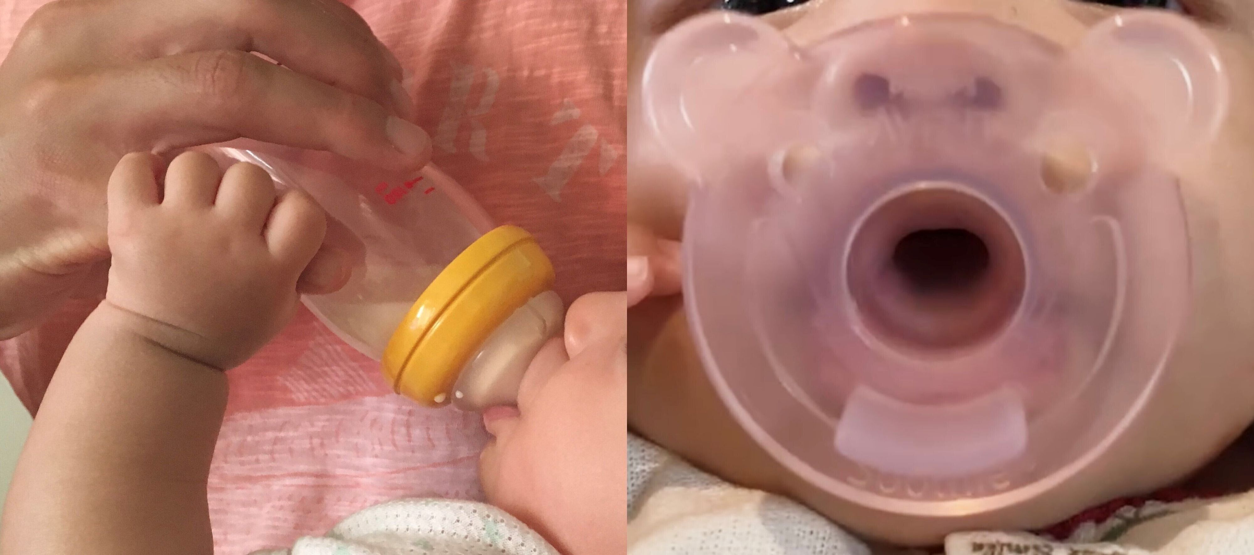 顔が歪んで脂汗が出てましたから、その痛みはかなりのものだったんだと思います。そんな時は一時母乳中止。痛みがおさまるまで、哺乳瓶でミルクをあげることにしていました。本当に痛そうなので、変わってあげたいんですけど、こればっかりは。なので「大丈夫?」って声をかけるくらいしかできません。