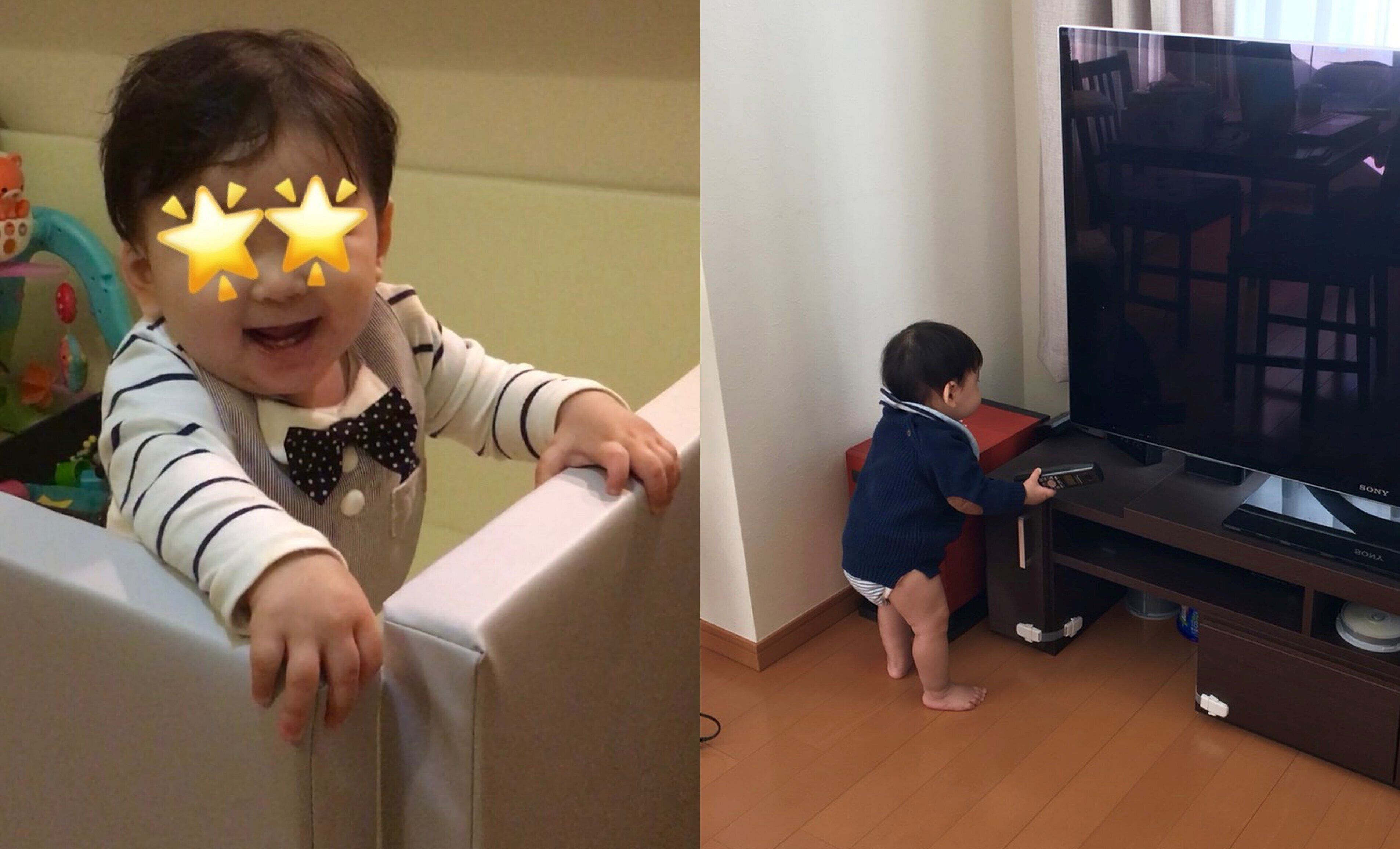 ハイハイからそんなに日数も経っていないころ、仕事から帰宅すると、ベビーサークルの中でつかまり立ちをしてるじゃありませんか!?