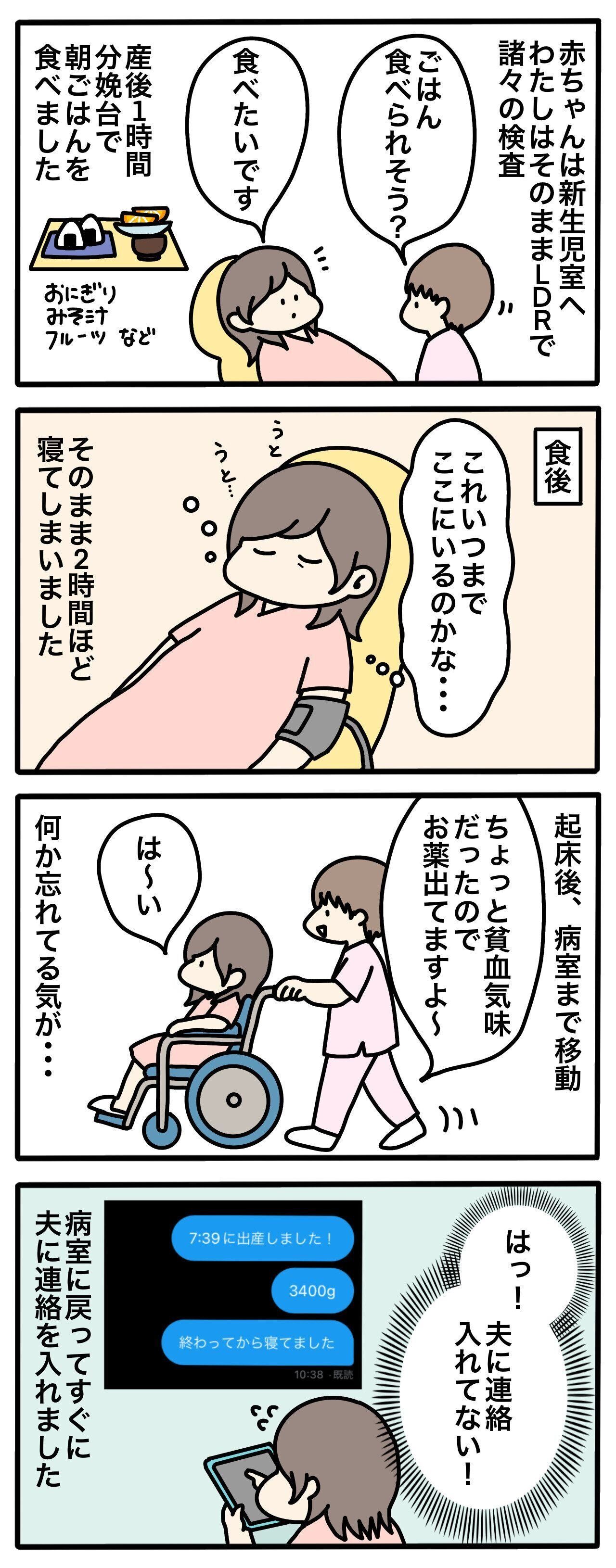 出産後そのまま寝てしまったので、夫への連絡が遅れてしまいました。