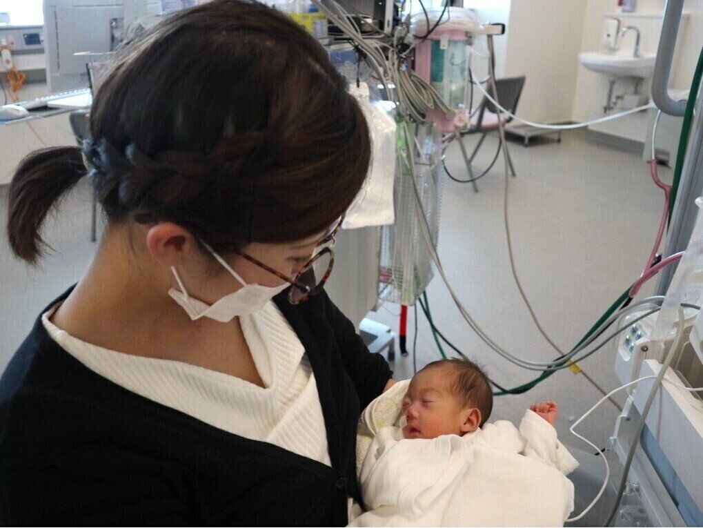 愛乃ちゃんは道東にある病院で生まれてすぐにNICU(新生児集中治療室)に入院となりました。日奈さんは産後5日で退院。それからは、実家から病院まで片道1時間半の道のりを、週6日ほど面会に通う日々になりました。