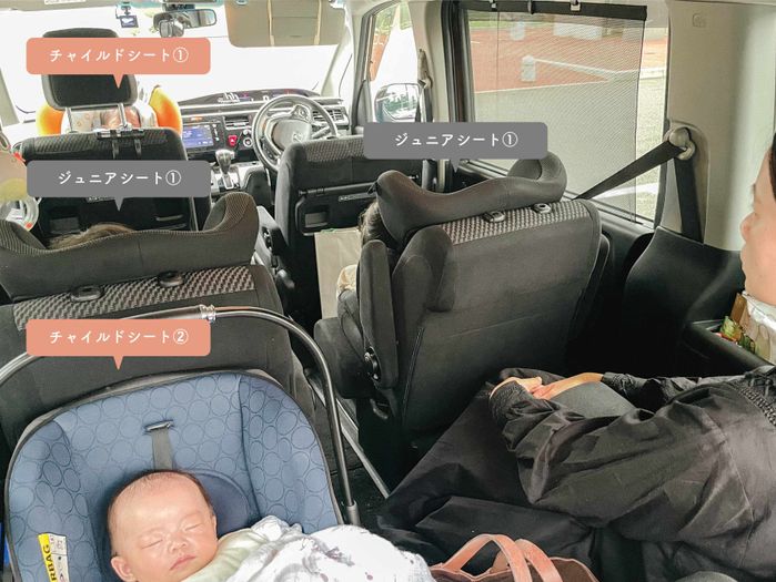 車内はジュニアシート2台、チャイルドシート2台が!