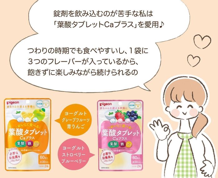 ピジョンの葉酸サプリは3タイプ。ライフスタイルや体調、好みに合わせて選べます。