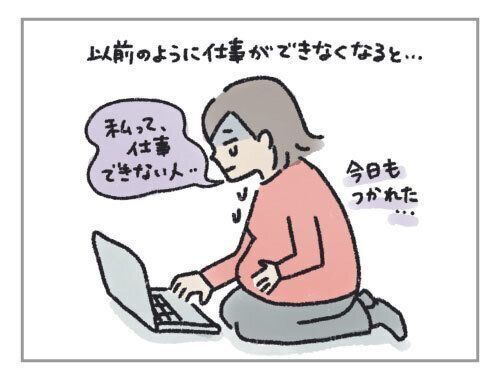 妊娠中、以前のように仕事ができなくなった私(連載第4話参照)。たいして働いていないのにも関わらず、家に帰ると、ぐったり疲れている毎日。「私って仕事ができない人・・・」という自己嫌悪に、悩まされるようになりました。