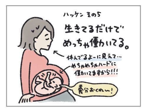 妊婦自身も忘れがちなんですが、実は生きてるだけでめちゃめちゃ大変な仕事をしているっていうハッケンでした。妊娠中のみなさん、がんばれ!