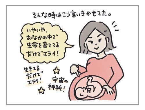 そんな時は、自分にこう言い聞かせていました。「いやいや、何にもしてないわけじゃない!お腹の中で生命を育ててるんだ、それだけでエライ!」と・・・。